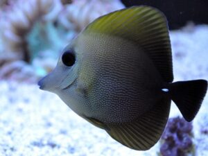 Tangs are reef-safe fish and, for the most part, won't pick or nip on corals. Tangs need to be fed a diet of dried algae-based pellets and flakes. Tangs also love to snack on dried seaweed sheets attached to an algae magnet inside the aquarium.